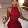 37 reviews for Bodycon Dress Backless Halter Mini Dress Wine Red