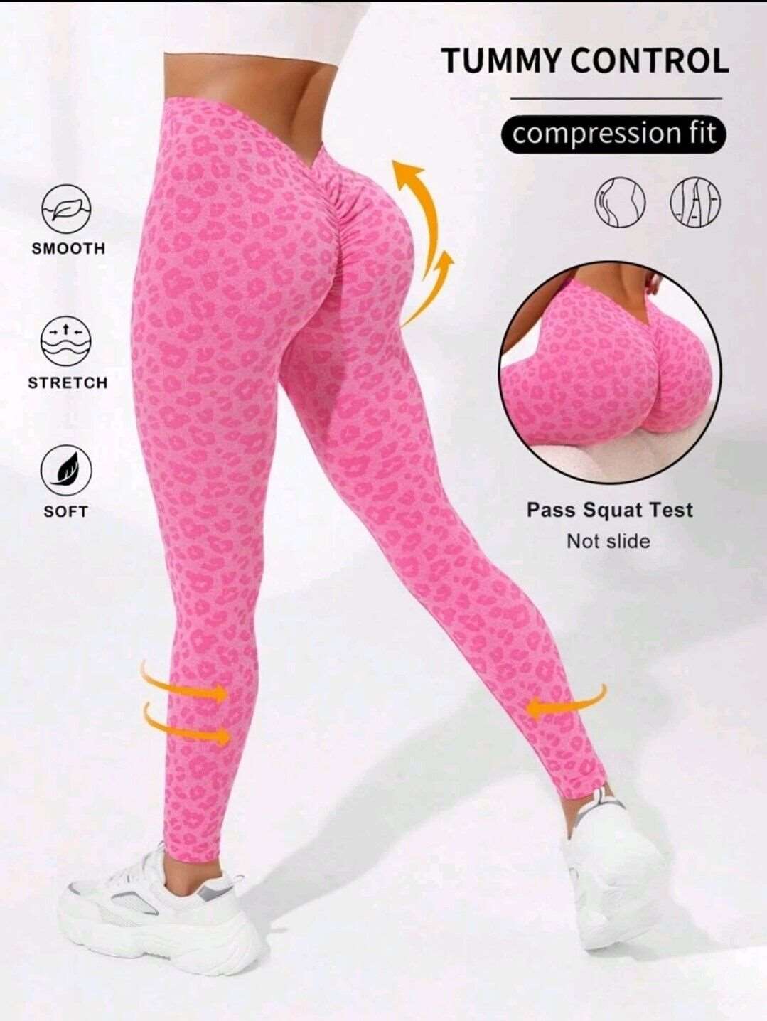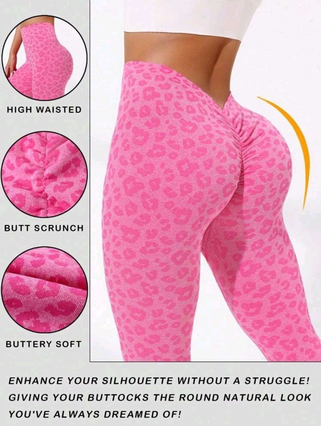 Transform your workouts with our Pink Seamless Double Hip Lifting Leopard Print Leggings! Featuring a butt scrunch for a natural round look, these buttery soft leggings also provide smooth, soft, and stretchy support. Pass the squat test with ease and enjoy tummy control compression for an enhanced silhouette without any struggle. Upgrade your fitness wardrobe today!