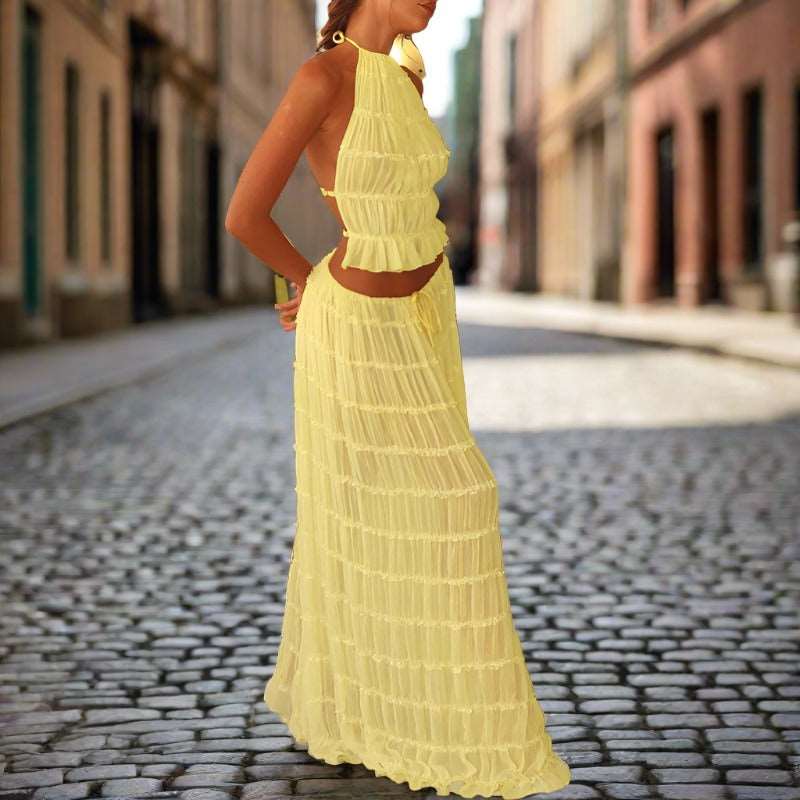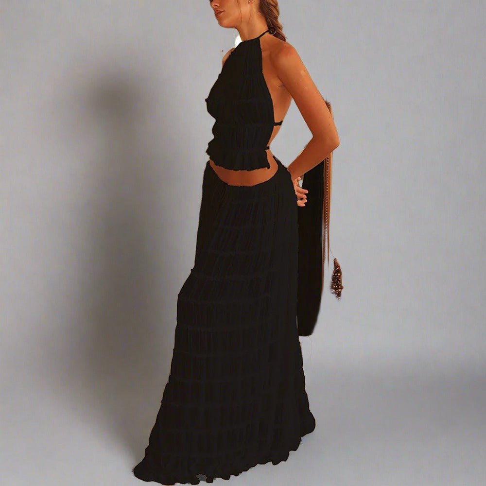Maxi Dress | Halter Top Pleated Long DressMaxi Dress | Halter Top Pleated Long Dress