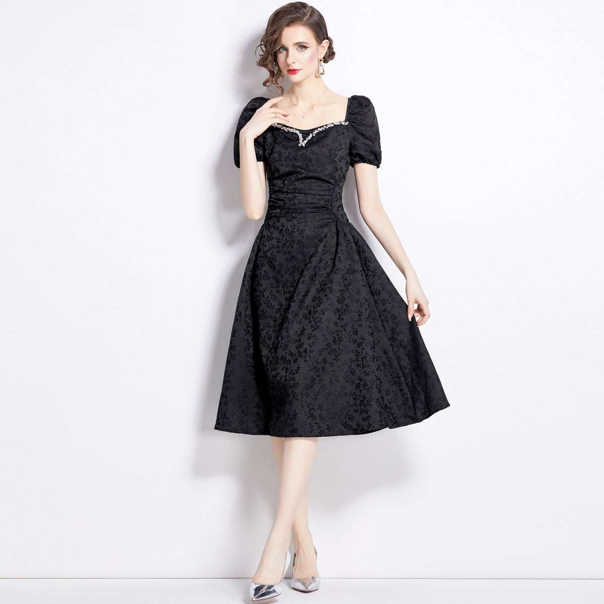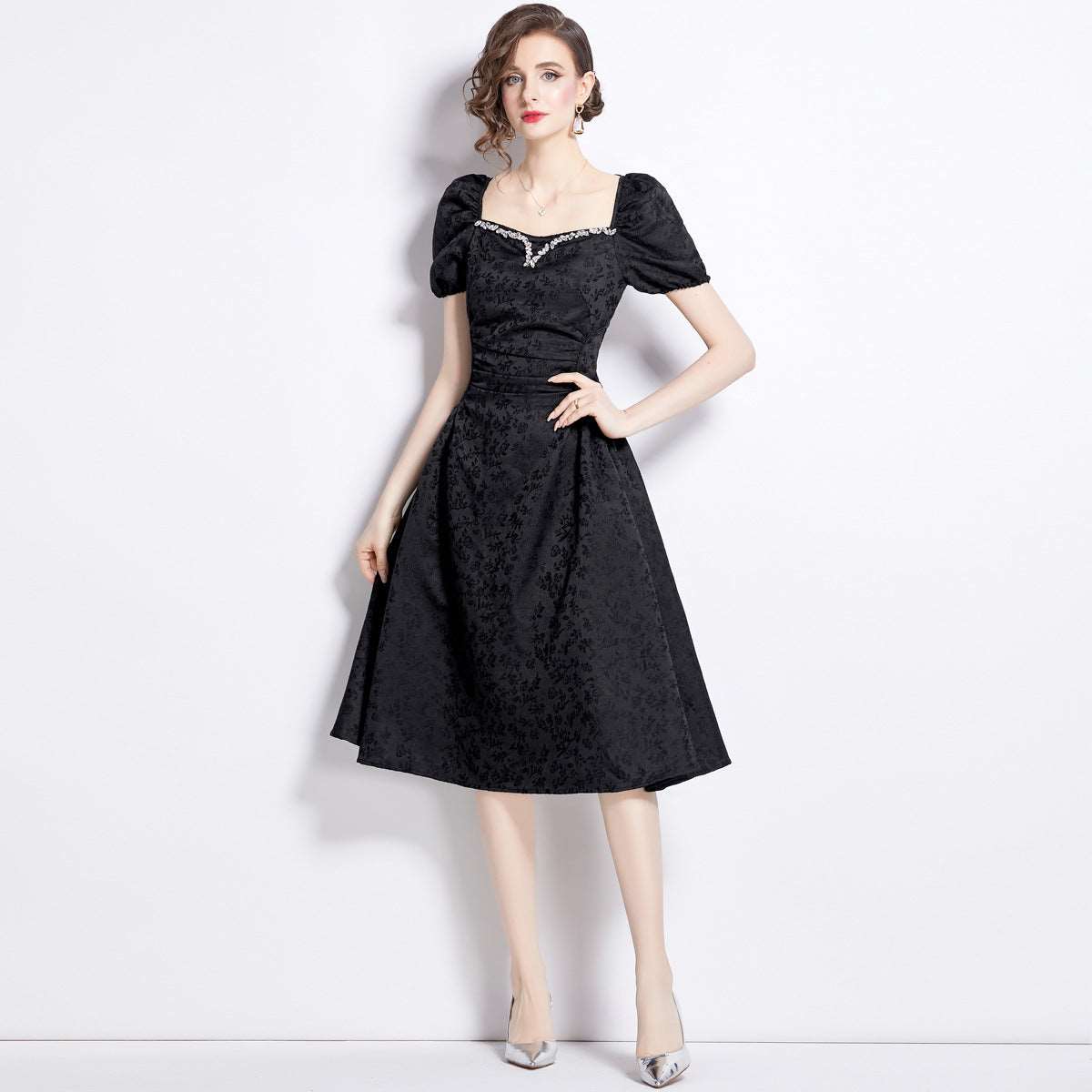 Elevate your wardrobe with our Midi Dress. Its puff sleeves, square neck, and cinched waist create an artistic retro look. The mid-length skirt adds a touch of French style. Made with premium quality materials, this luxurious dress is sure to make you stand out in any setting.