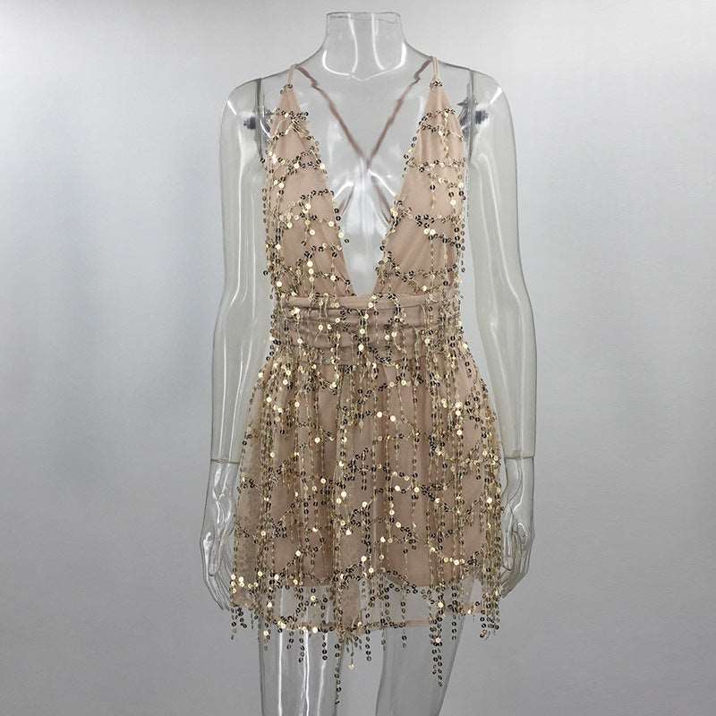 Mini Dress | Backless Sequin – Apricot