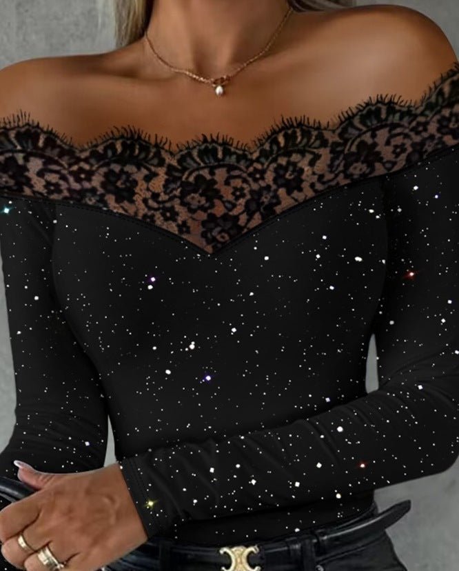Effortlessly elevate your party style with our Party Top. Featuring a flattering slim fit and sultry off-shoulder design, this top is sure to turn heads. The long sleeves add a touch of sophistication, while the high-quality material ensures lasting comfort. Get ready to make a statement with this trendy and elegant lace top.